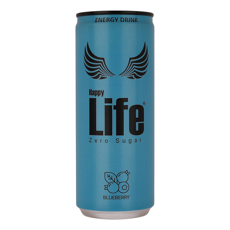 نوشیدنی انرژی زا بدون قند با طعم بلوبری هپی لایف - 250 میلی لیتر